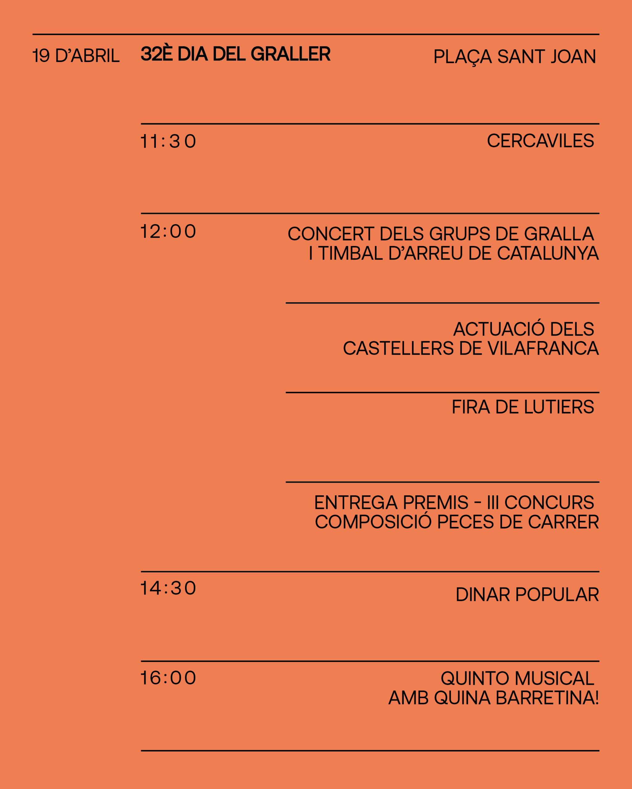 Per tal de no trencar amb aquest llegat, el Dia del Graller siguirà sumant edicions emmarcat dins del D.O. Gralla com a acte central i tradicional de l’últim diumenge de festival.